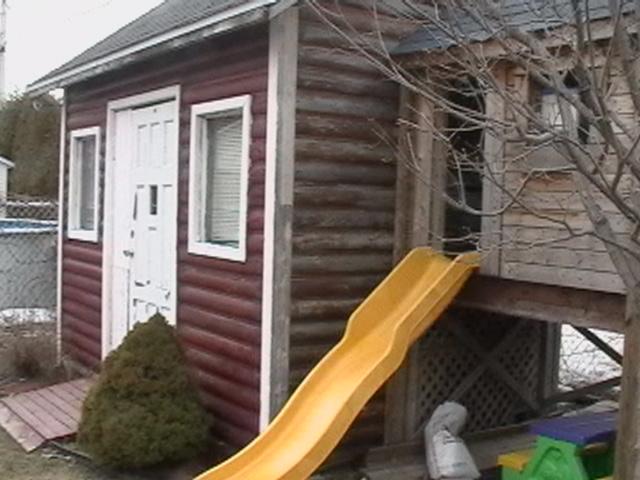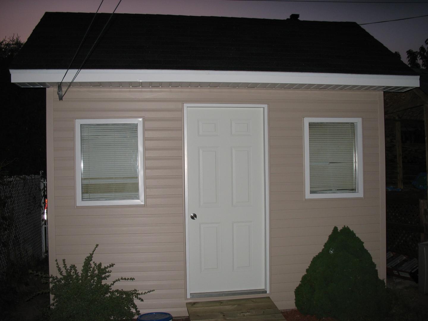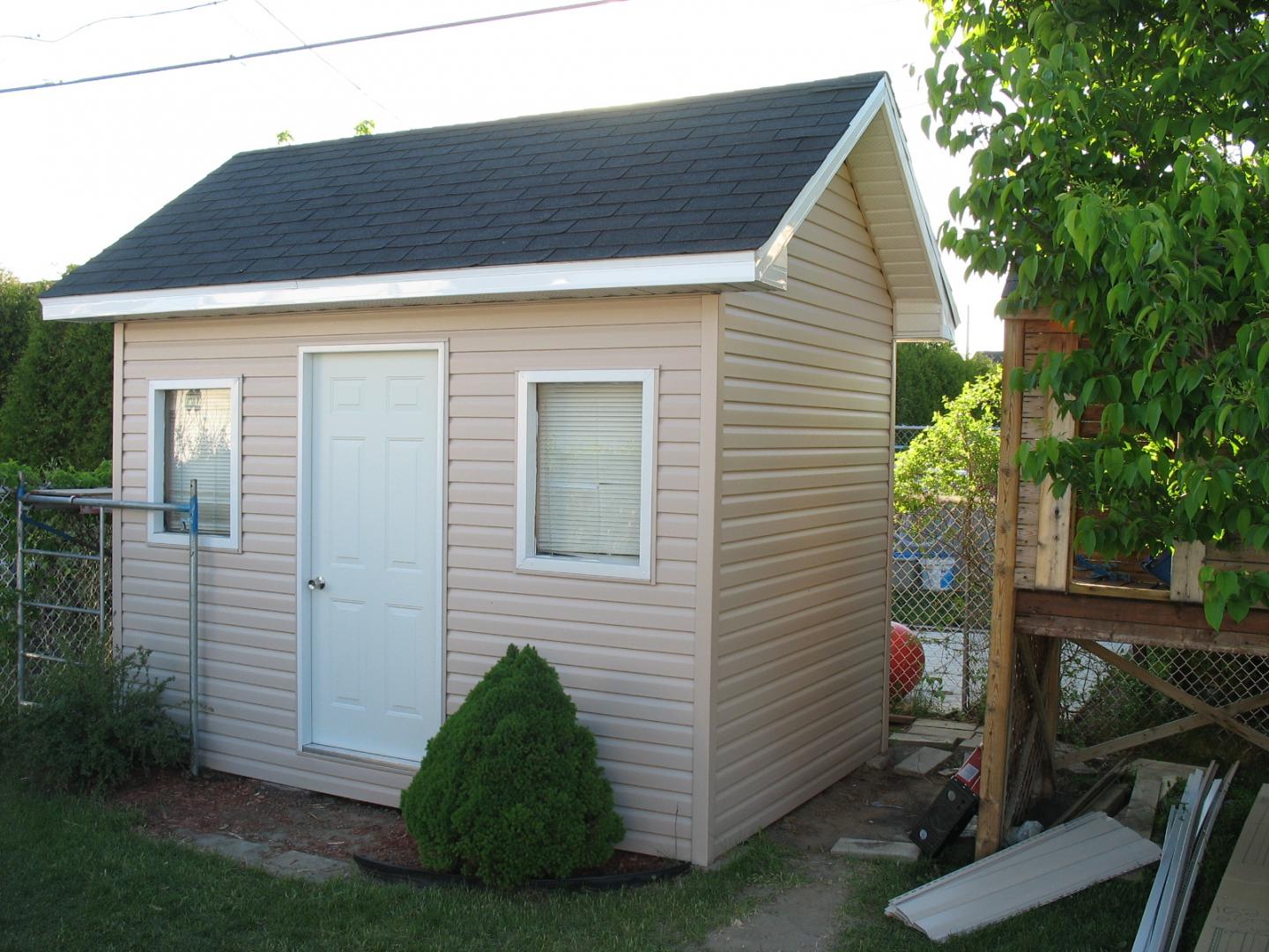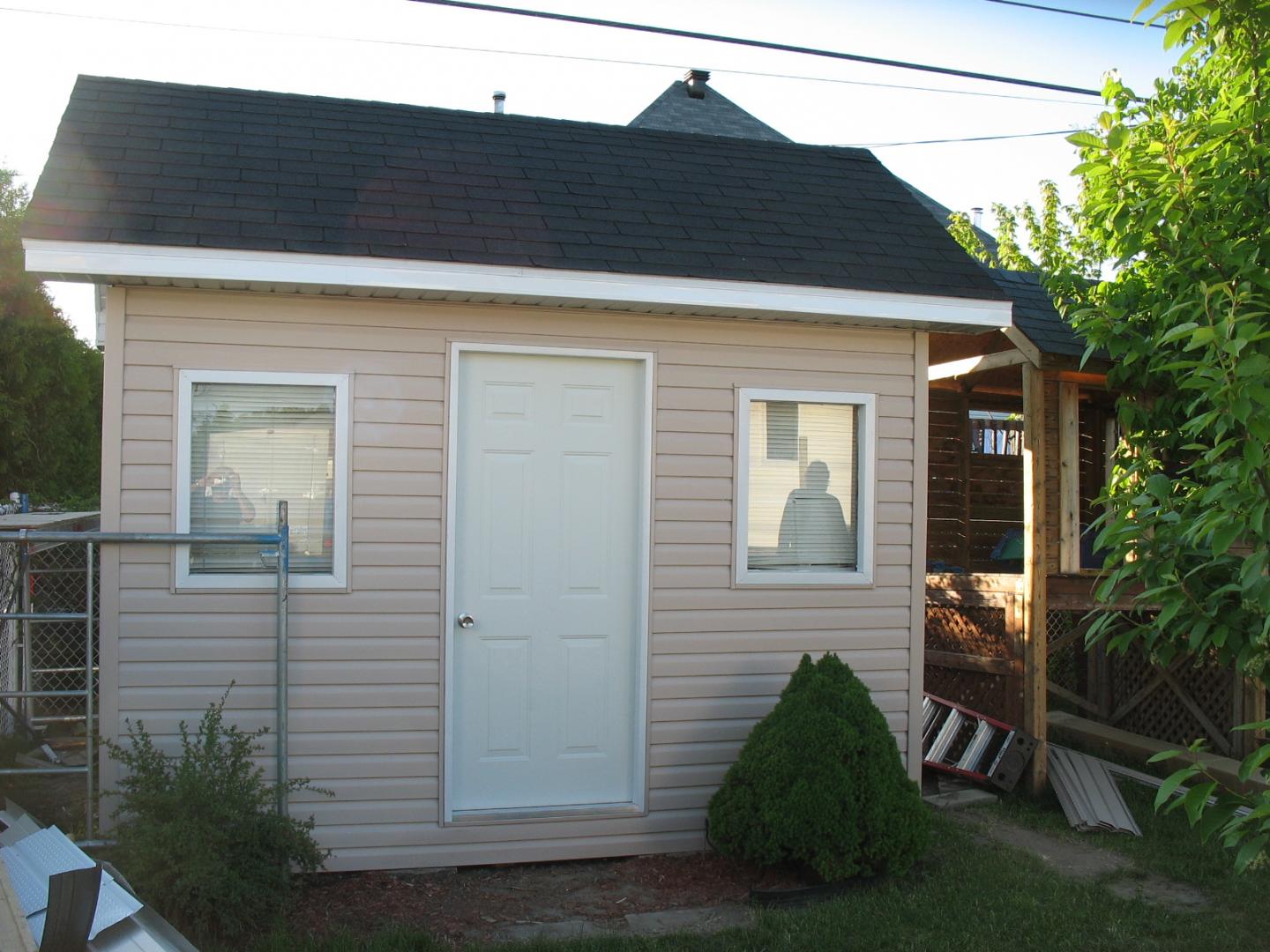 Réfection de l'extérieur d'une remise. Pose de déclin de vinyle ainsi que de fascia d'aluminium pour la toiture, le tout à Trois-Rivières